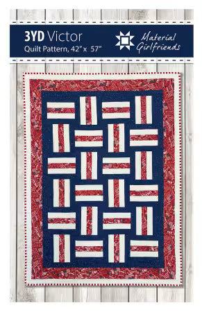 • Official 3-Yard Quilt Pattern Victor by Material Girlfriends• Three coordinating 1-yard cuts (3 total yards) from your chosen fabric collection