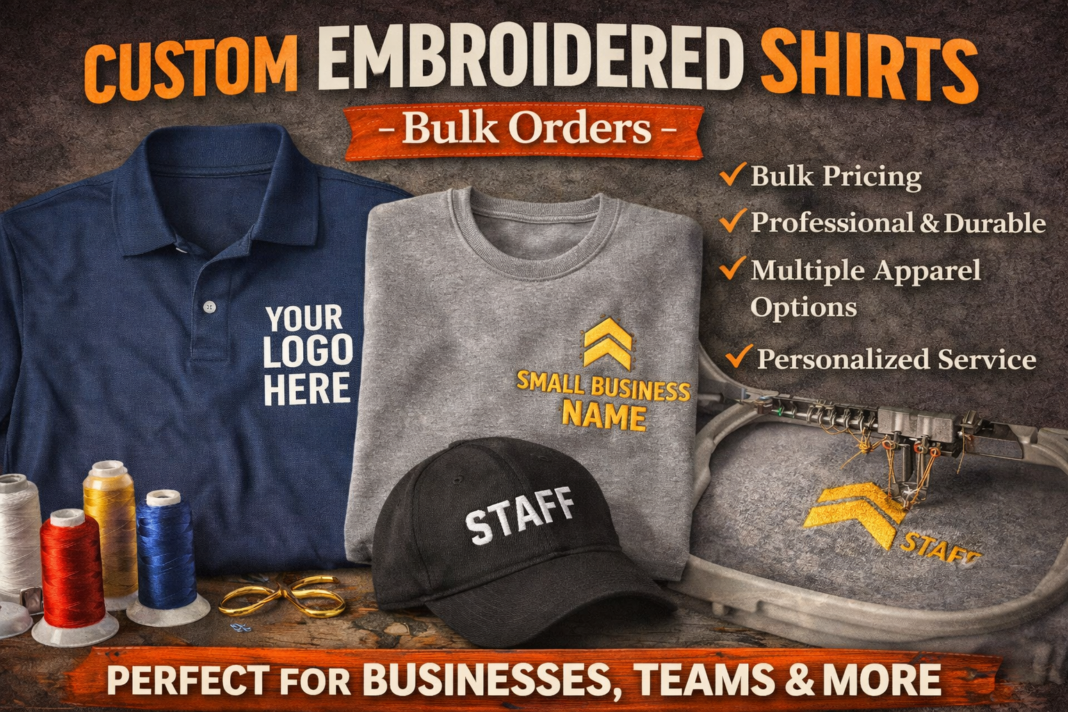 Professional Embroidery for Businesses, Teams & Organizations